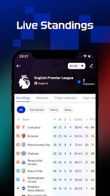 Oplev den ultimative sportsoplevelse med AiScore, din dedikerede partner til alt inden for fodbold, basketball, tennis og snooker. Fra de spændingsfyldte øjeblikke i FIFA World Cup og Premier League til de intense dyster i NBA og WTA-touren, leverer AiScore et uovertruffent overblik over scores, mål, kort, head-to-head statistikker, kampprogrammer og meget mere. Uanset om det er små lokale ligaer eller verdens største mesterskaber, får du dybdegående dækning af hold- og spillerstatistikker, ligatabeller og opstillinger, alt sammen lige ved hånden.