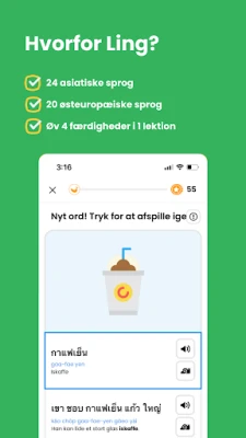 Trænger du til at mestre et nyt sprog, men frygter de kedelige skolebøger? Med Ling kan du vinke farvel til monoton undervisning og byde velkommen til en spændende verden af interaktiv sprogindlæring. Ling er designet til at gøre din rejse mod flydende sprogfærdighed ikke bare effektiv, men også utroligt sjov. Glem alt om at terpe; her lærer du gennem leg, udfordringer og intuitive øvelser, der holder dig motiveret fra første ord.