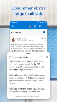 Denne problemfri integration betyder, at alt, du behøver, er lige ved hånden, hvilket strømliner din arbejdsgang og frigør tid. Med avancerede strygebevægelser og smarte filtre er det en leg at holde orden i indbakken. **Outlook til Android** er designet til at give dig et klart overblik og kontrol, så du nemt kan navigere i dagens opgaver, uanset hvor du befinder dig. Få overblik over dine meddelelser og begivenheder med uovertruffen effektivitet.